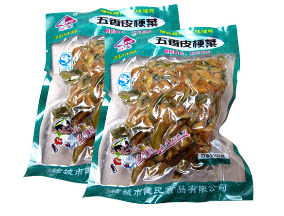 五香皮根菜采用优质芥菜头为原料,采用传统工艺与现代科技相结合,精制而成。本品辣香浓郁,清脆可口,冬季食用清口开胃。是宴请宾客、馈赠亲友及佳品。通常有袋装、瓶装两种包装方式,商品条形码:6936721712691,生产许可证编号QS:370716011205