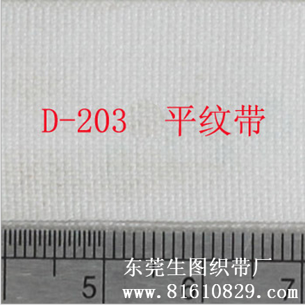 此款D-203绦纶平纹织带,各种宽度均可生产,精细织造,织纹细腻紧致,并具有棉纱特有的柔软舒服的特性,高档品质,用心织造.