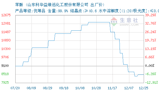 06月10日山东利华益维远苯酚为6400元