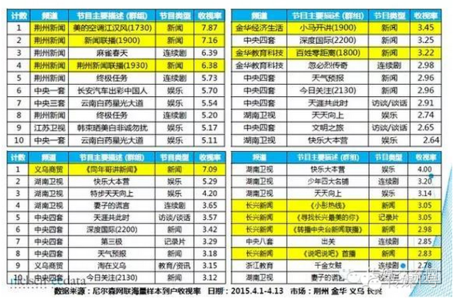 从收视数据反映的情况可以看出,多层级的电视媒体收视市场竞争非常激烈。