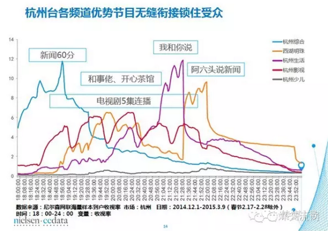 在收视拉起后,后续节目要尽可能的保持与之前节目的受众吻合度,继续留住观众。