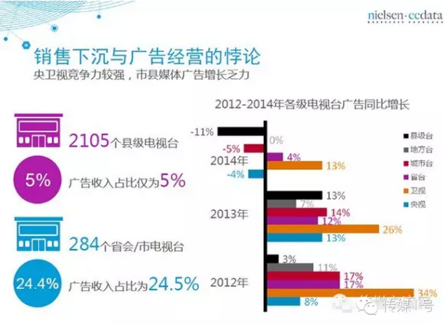 但是,市县级电视媒体的广告经营逐渐呈现乏力的状况。消费市场与广告市场之间呈现了非正向的发展方向。