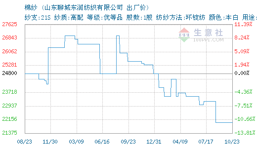 10月23日东润纺织棉纱为22000元