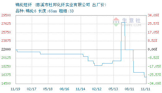 11月11日慈溪杜邦锦纶短纤为16000元