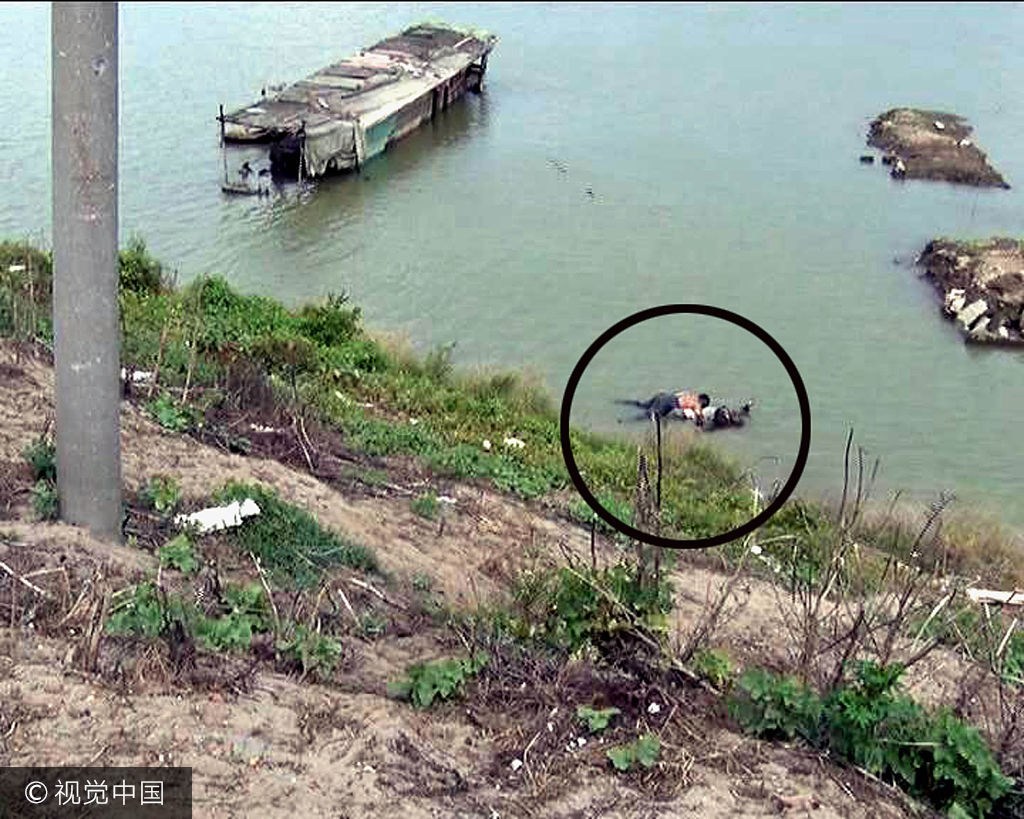 这两具尸就在秦淮河方山段的南岸,记者接报赶到现场时,警方已经在现场勘察。这是一男一女两人,已经被波浪吹到岸边的石头上。女的穿着衣服,男子上身裸,一只手还拉着女子,因为距离较远,看不清两人面容,但可以看出两人年纪都较轻。
