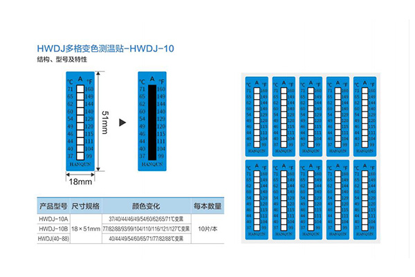 多格显示测温纸生产,这些特点,使得其在各种环境中都能适应不同的要求,并且具有很强的适用性。在测温过程中,可以通过对照组合、电子测温仪等进行测量,并可通过计算机软件进行控制。其工作原理是在不同温度条件下,变色器中的温差可以达到±2℃。这样就可以根据不同的需求,选择相应的仪表进行测量。变色贴是一种防油、耐腐蚀、耐酸碱、易清洗和可再生的材料。它具有很好的柔软性及粘合性能。变色贴是一种防油、耐腐蚀、易清洗和可再生的材料。它具有很好的柔软度及粘合性能。变色测温贴具有的特点是变色测温贴可用来对水、电、气等进行测定。